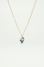 Lângă această piatră, o floare de lotus pictată manual și un mic nufăr aduc un omagiu subtil armoniei dintre artă și natură. Colierul adaugă o notă de poezie și rafinament ținutelor tale de zi cu zi.