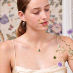 Acest colier delicat este o reinterpretare în miniatură a tabloului „Pontonul cu nuferi”. La capătul lanțului fin placat cu aur, o piatră albastră fațetată atrage imediat privirea – asemenea reflexiilor din apa liniștită a unei grădini japoneze.