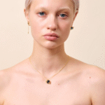Acest colier poate fi purtat zilnic și se potrivește perfect cu cerceii asortați din aceeași colecție – cu stele aurii și piatră pătrată.